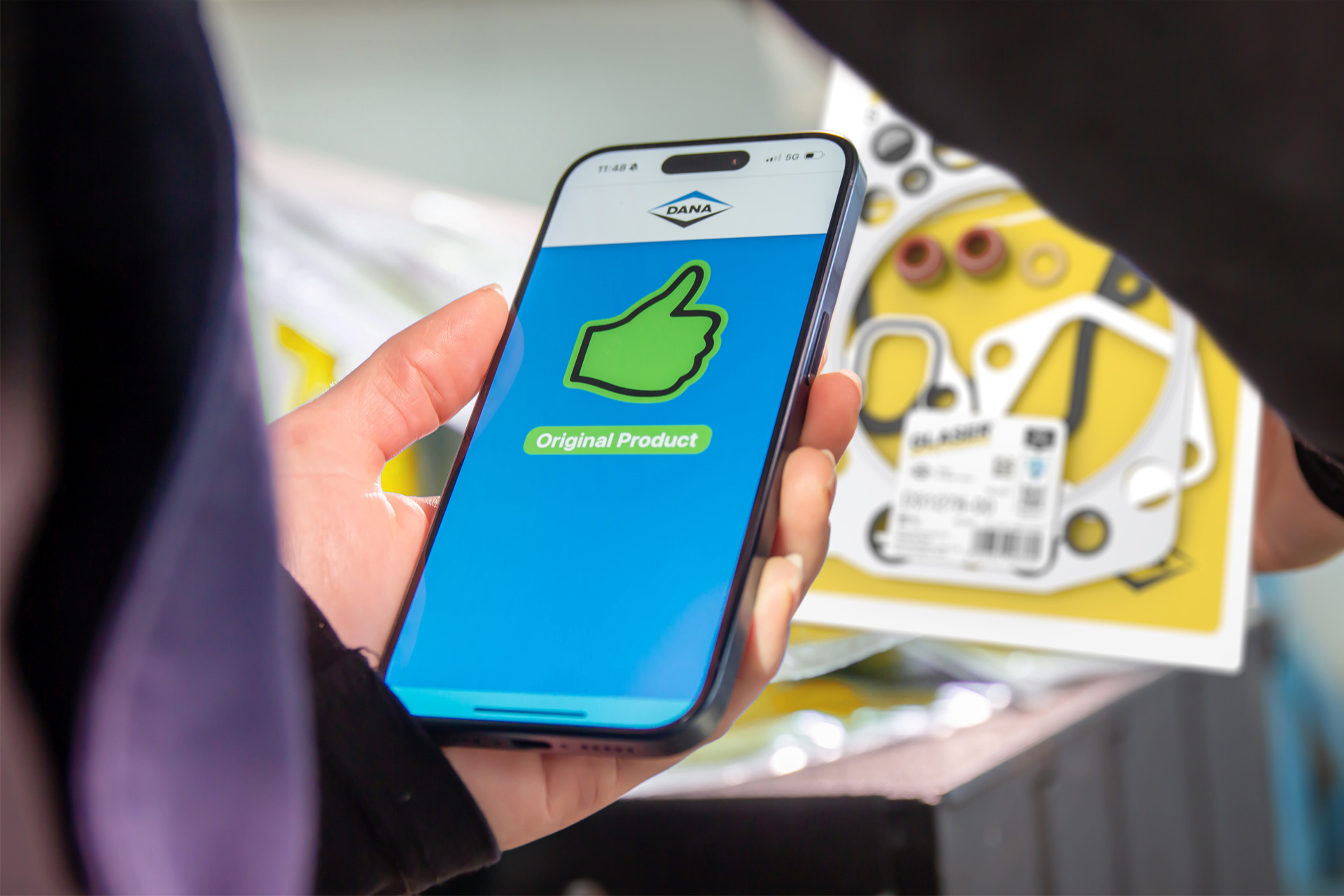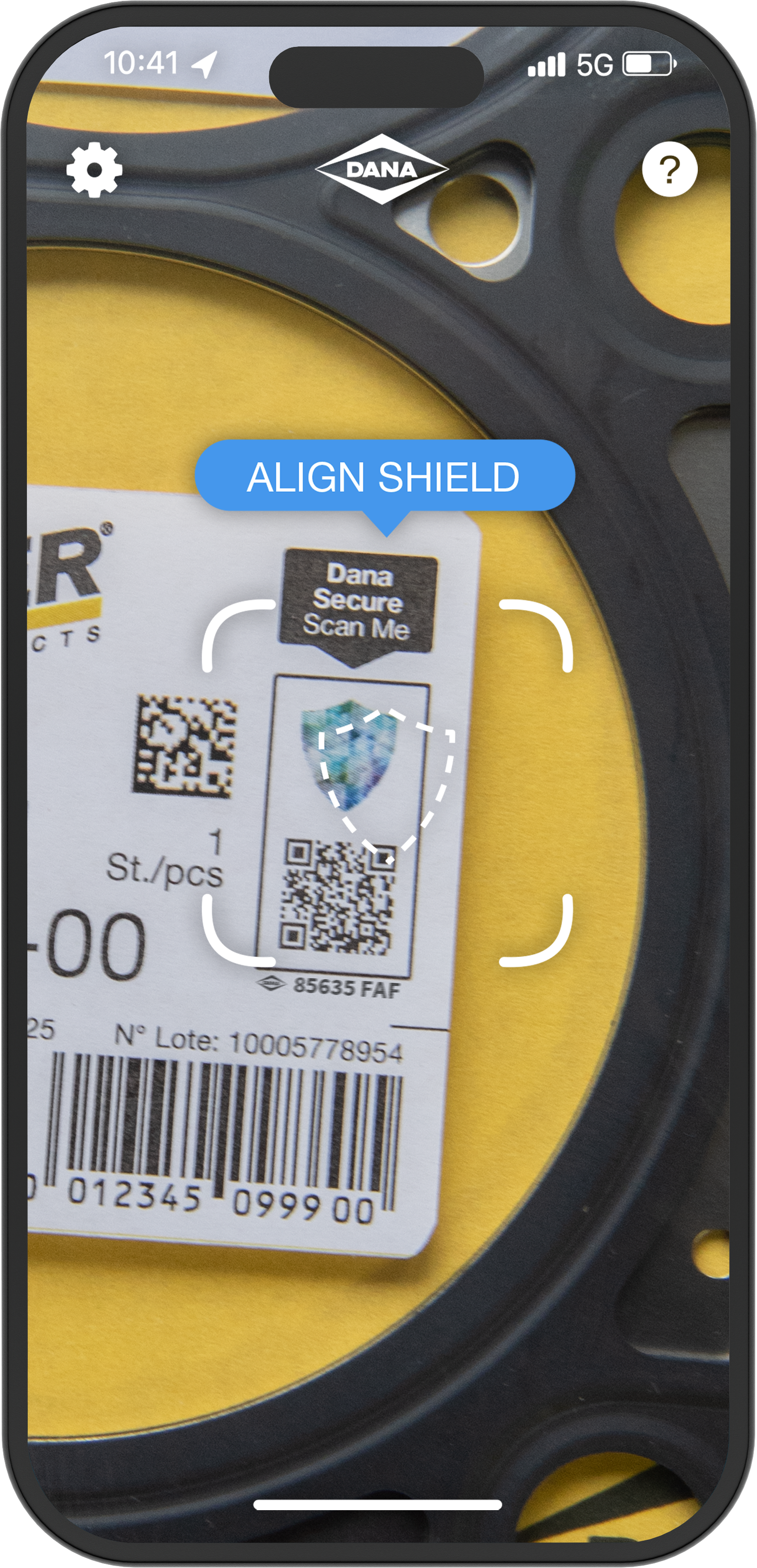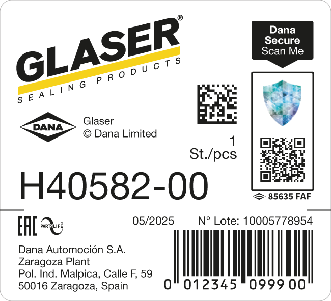 L'étiquette Dana Secure permet de vérifier rapidement et facilement l'authenticité du produit. Elle repose sur un code QR sérialisé avec un hologramme intégré contenant une empreinte digitale unique. L'étiquette est apposée sur l'emballage d'origine.